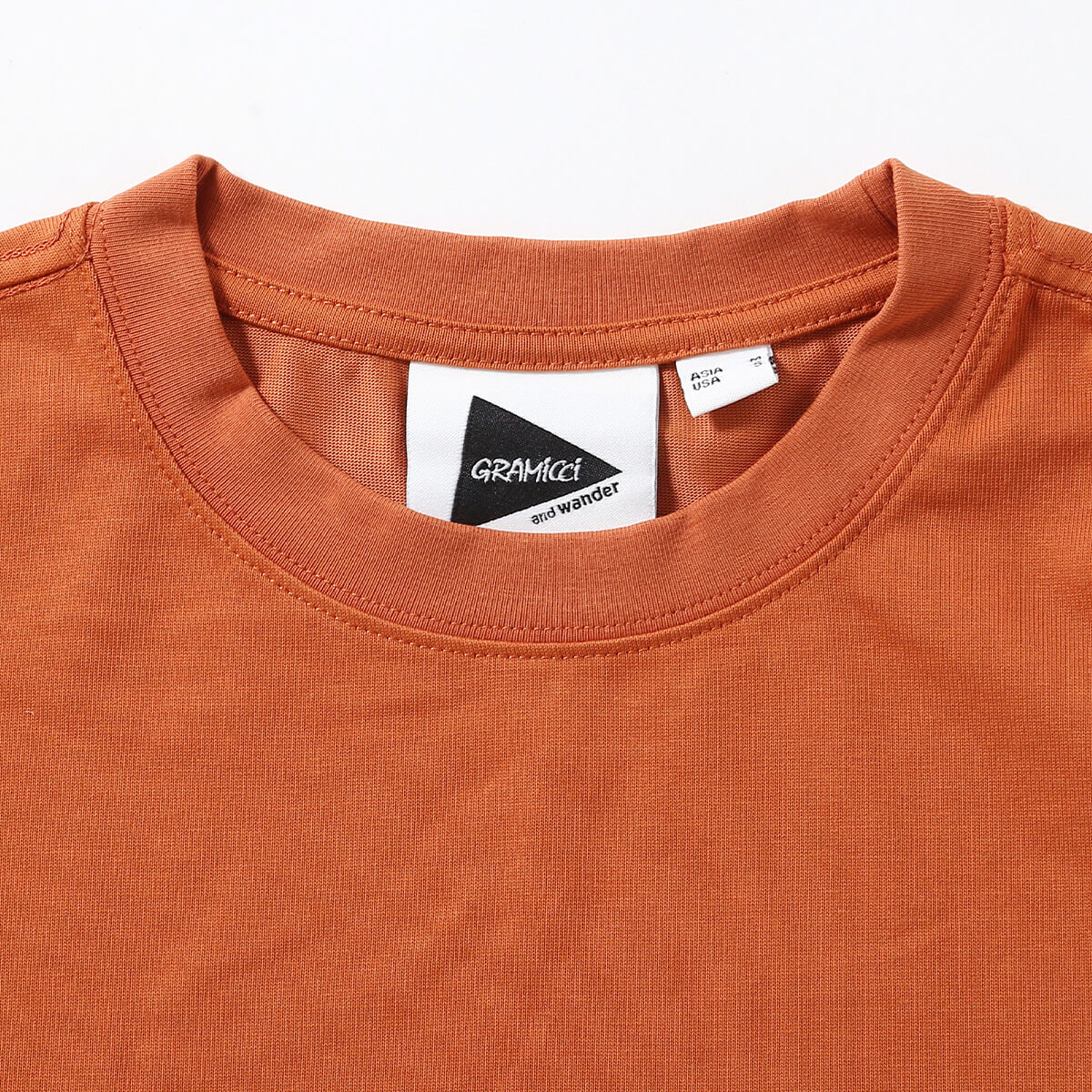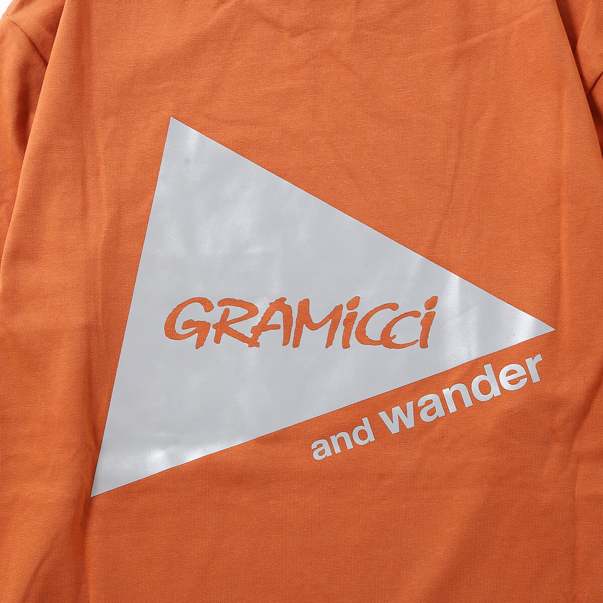 Gramicciとand wander コラボレーションのために作られたジョイントロゴを、背中にリフレクターインクでプリントしています。COOLMAXの強捻天竺素材を使用しており、一年中快適な着心地です。