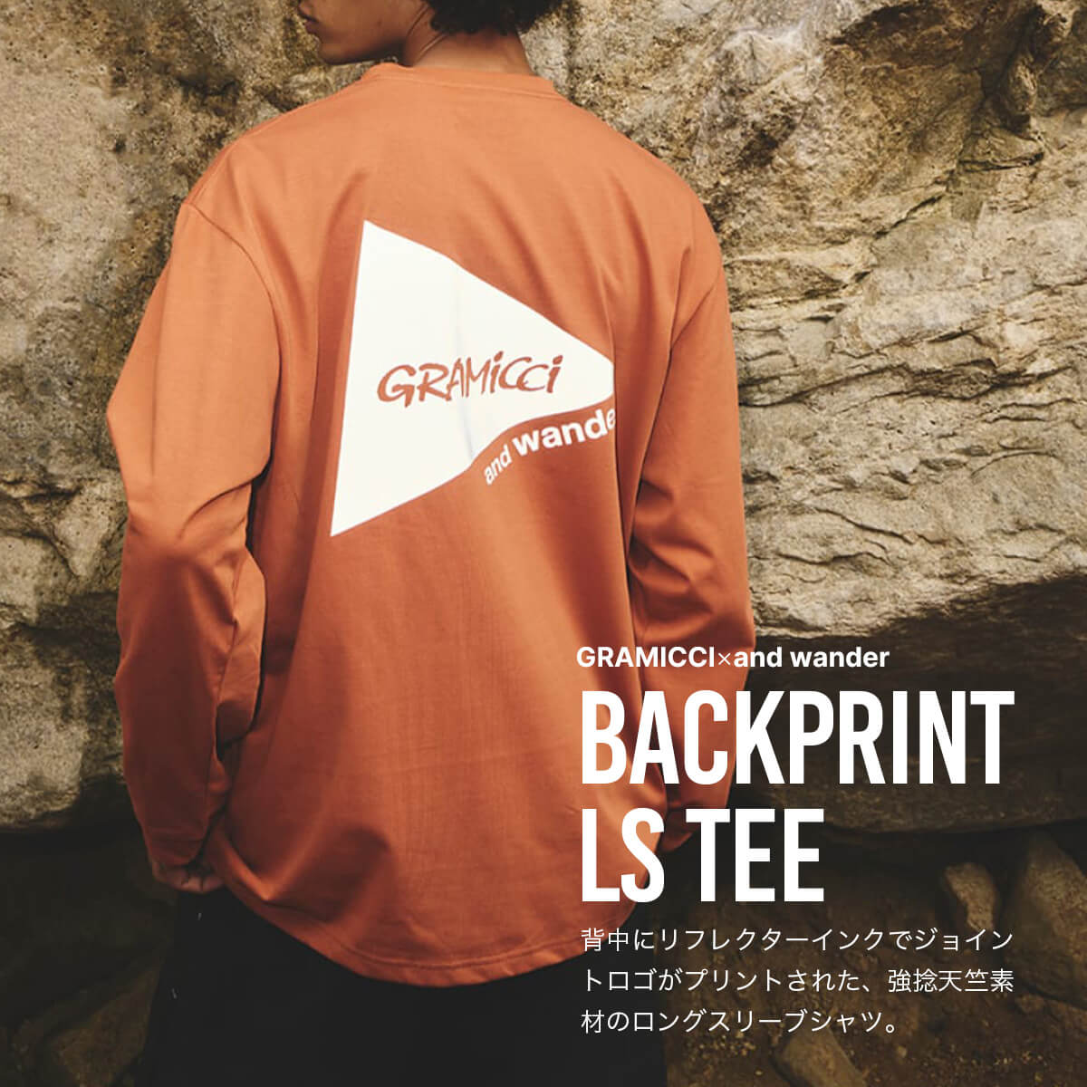 グラミチ×アンドワンダー バックプリントLS Tee GRAMICCI×and wander backprint LS tee メンズ 5744284716 トップス ロンT 長袖 クルーネック シンプル デイリーユース おしゃれ キャンプ アウトドア