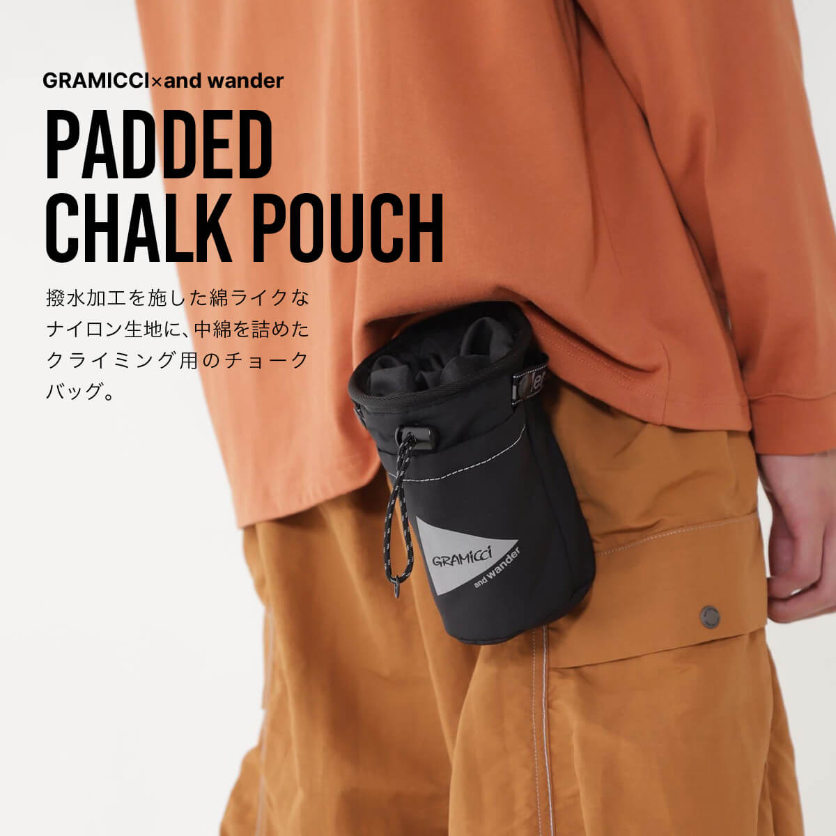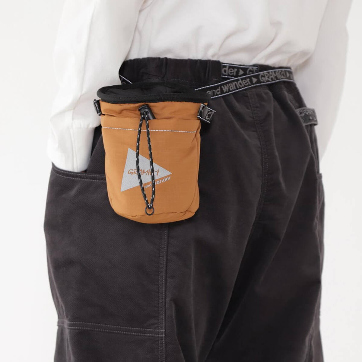 GRAMICCI×and wanderコラボの、クライミング用のチョークバッグ。