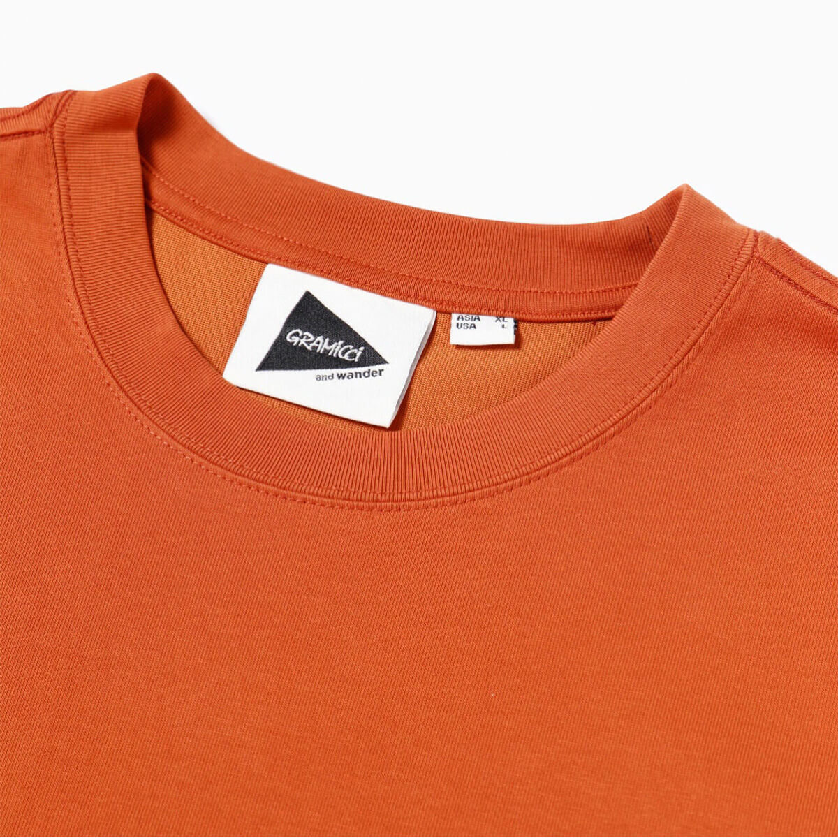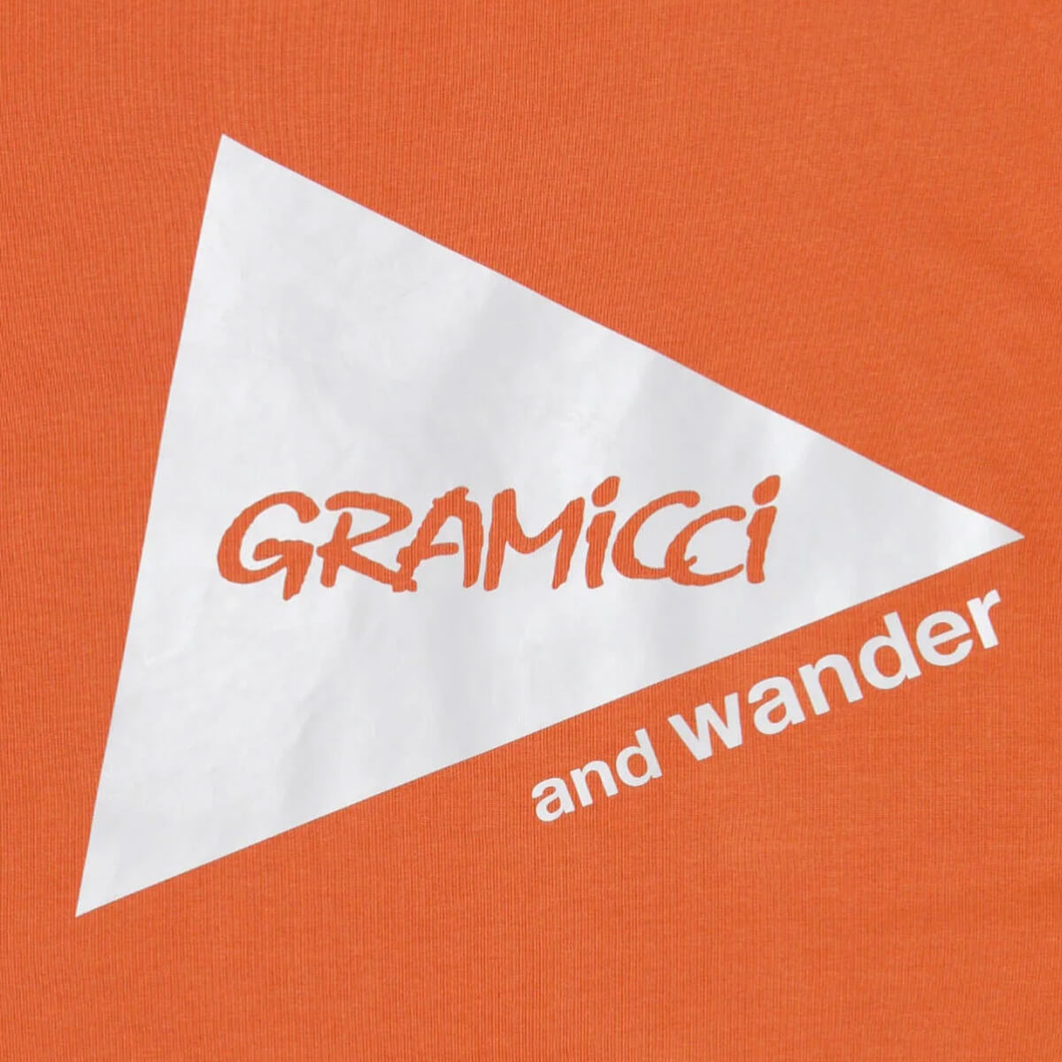 Gramicciとand wander コラボレーションのために作られたジョイントロゴを、背中にリフレクターインクでプリントしています。COOLMAXの強撚天竺素材を使用しており、一年中快適な着心地です。