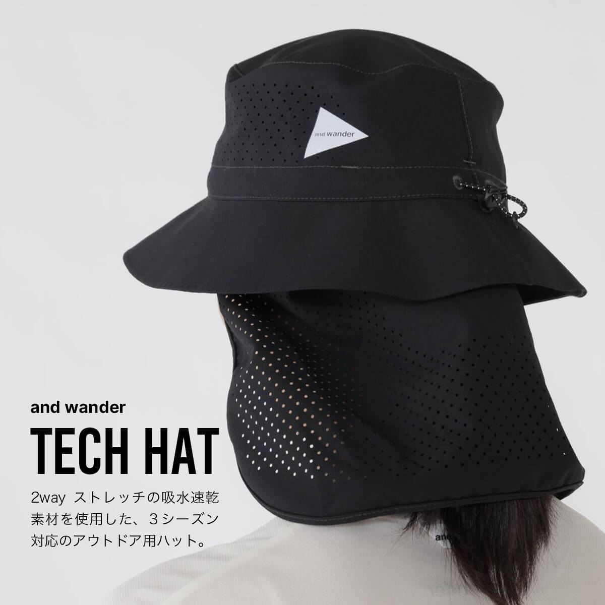 アンドワンダー テックハット and wander tech hat 5745976240 帽子 軽量 2way 日除け ネックカバー 登山 カジュアル おしゃれ キャンプ アウトドア