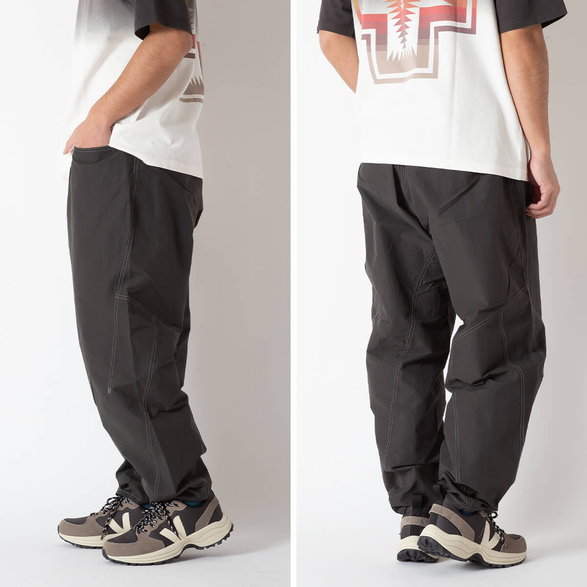 配色ステッチがデザインと機能を可視化し、山から街へとシームレスにつながる、and wanderらしい一本です。