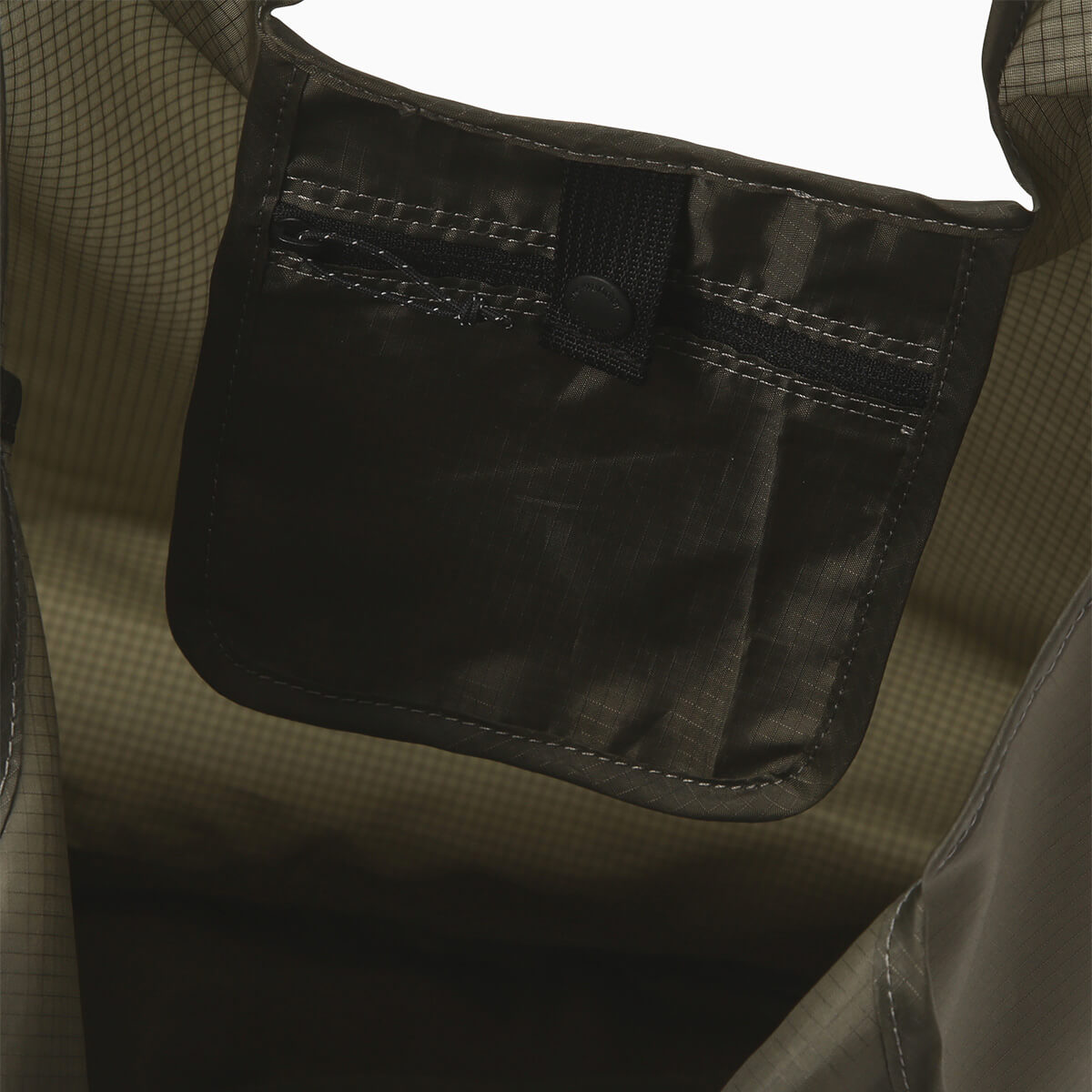 薄手で軽量なリサイクルリップストップ素材を使用したエコバッグ。内側ポケットに本体収納が可能な、パッカブル仕様です。
