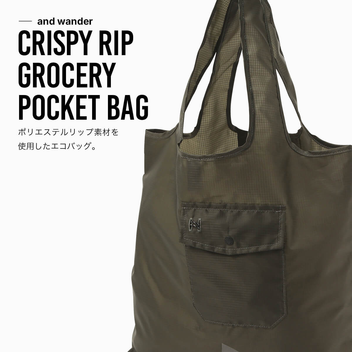 アンドワンダー クリスピーリップグロッサリーポケットバッグ and wander grocery pocket bag ユニセックス メンズ ウィメンズ レディース 5746985150 エコバッグ サブバッグ トート パッカブル 軽量 撥水 レジ袋 フェス おしゃれ キャンプ アウトドア