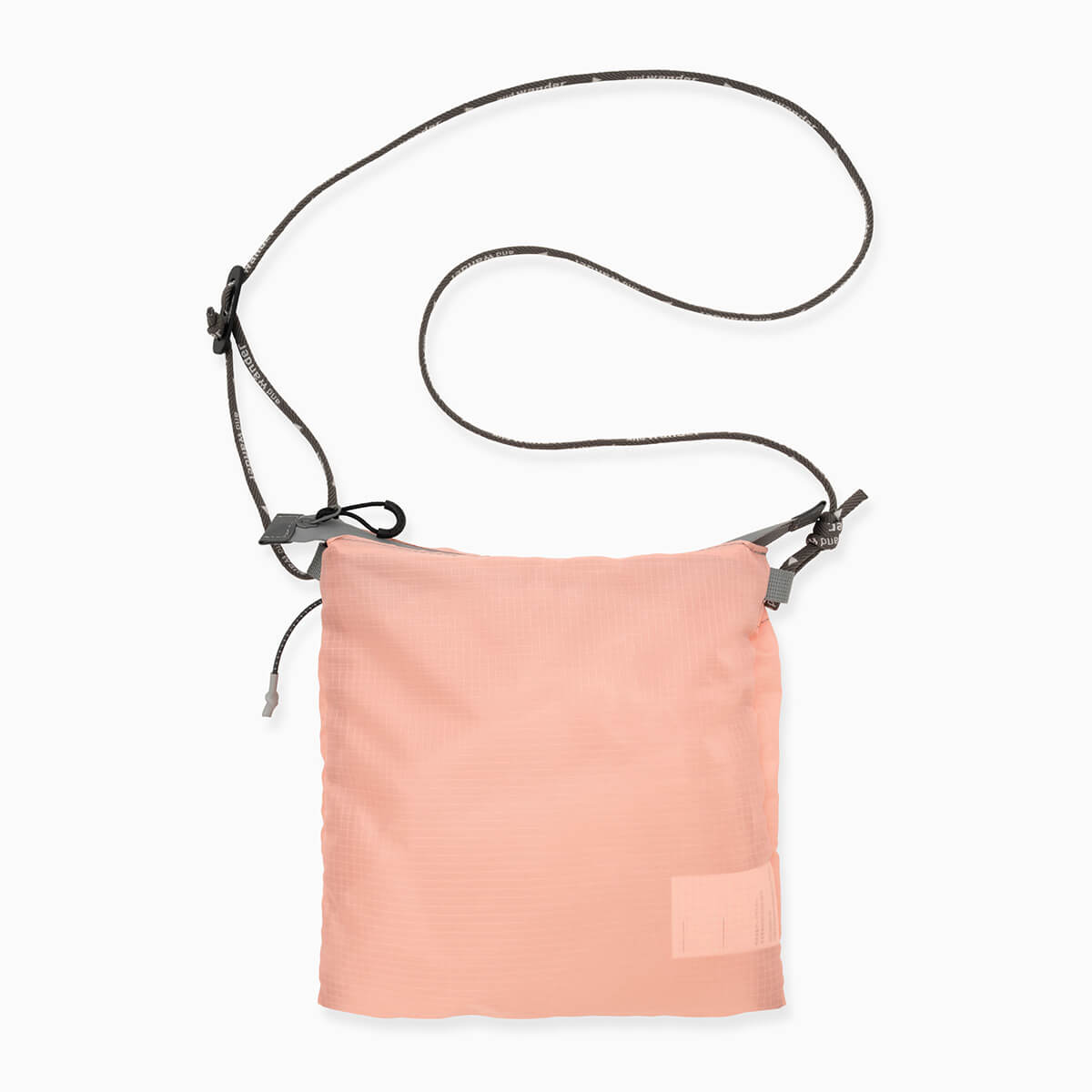薄手で軽量なリサイクルリップストップ素材を使用したサコッシュ。ブランドロゴ入りのコードが特徴です。
