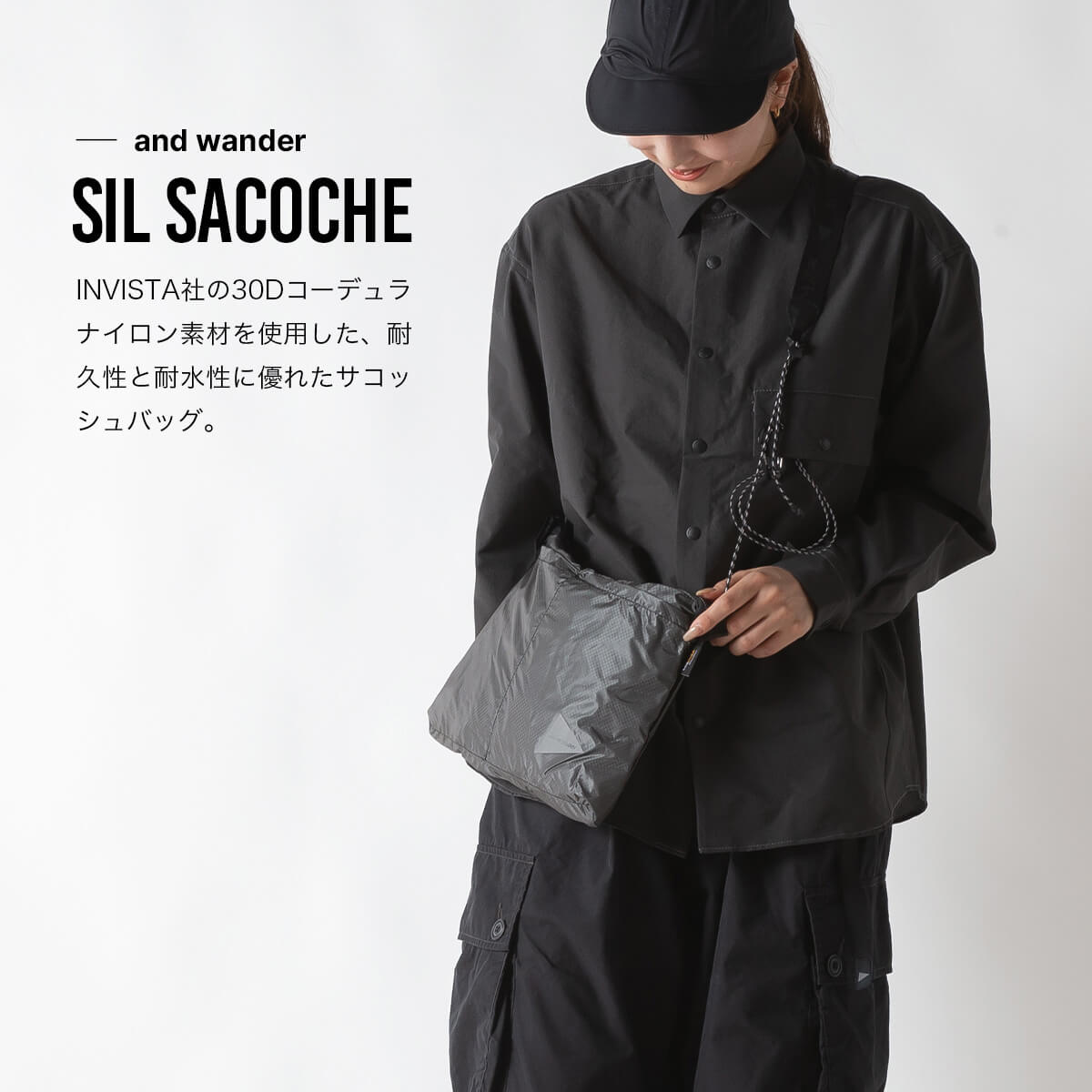 アンドワンダー シルサコッシュ and wander sil sacoche 5745975213 サコッシュ ポーチ ショルダーポーチ バッグ トラベル 旅行 フェス おしゃれ キャンプ アウトドア