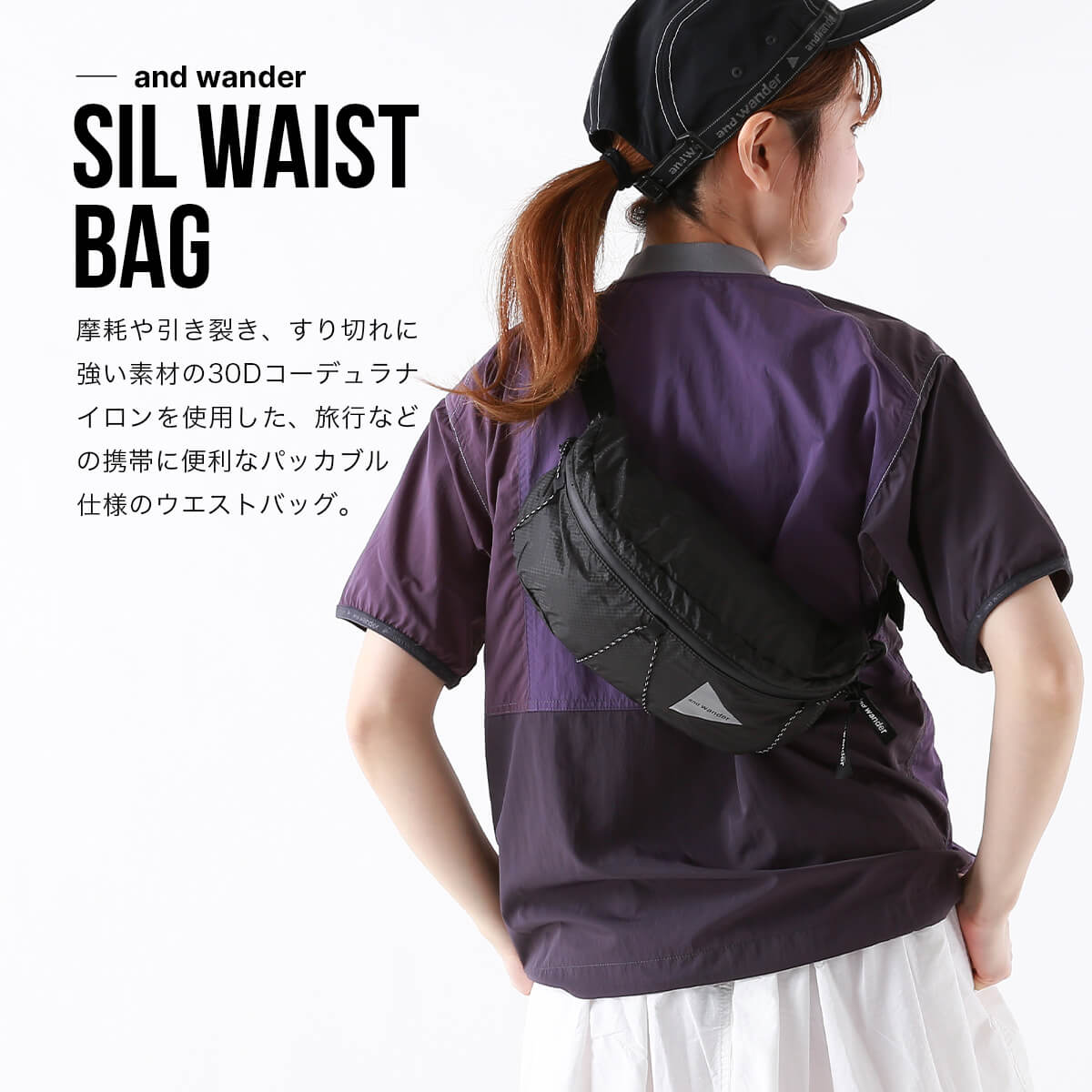 アンドワンダー シルウェストバッグ and wander sil waist bag 5745975214 バッグ ウエストバッグ ボディバッグ ウエストポーチ 撥水 パッカブル おしゃれ キャンプ アウトドア
