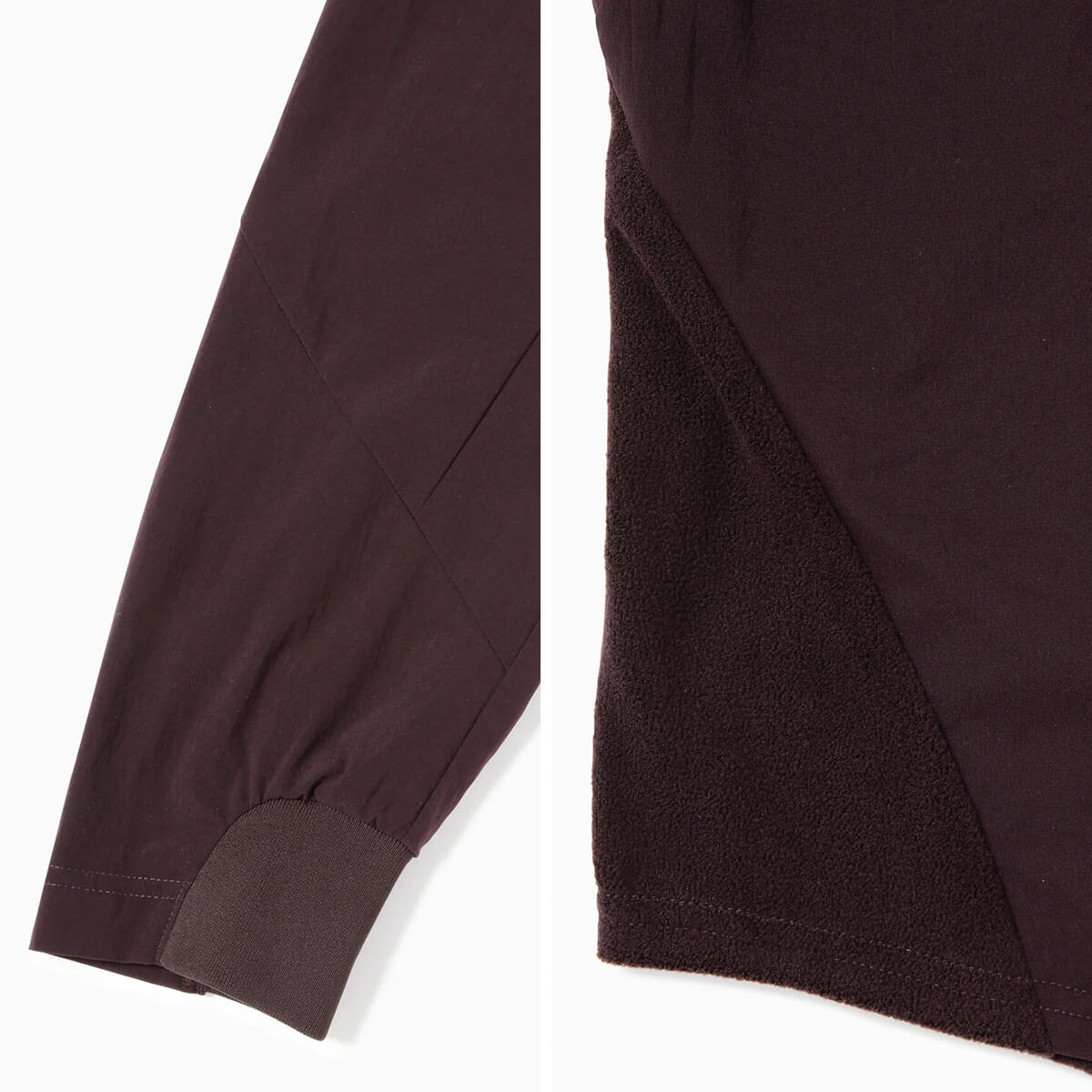 インビスタ社のサーモライトファブリックを使用した柔らかな風合いの薄手フリースと、部分的にストレッチ素材を使用したロングスリーブシャツ。ファスナー付きのチェストポケットと、リフレクタープリントのブランドロゴがアクセントになっています。
