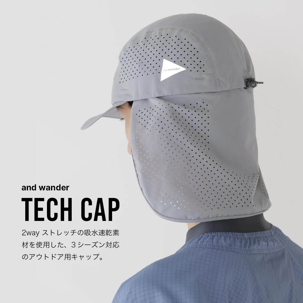 アンドワンダー テックキャップ and wander tech cap 5745976239 帽子 キャップ 軽量 2way 日除け ネックカバー 登山 カジュアル おしゃれ キャンプ アウトドア