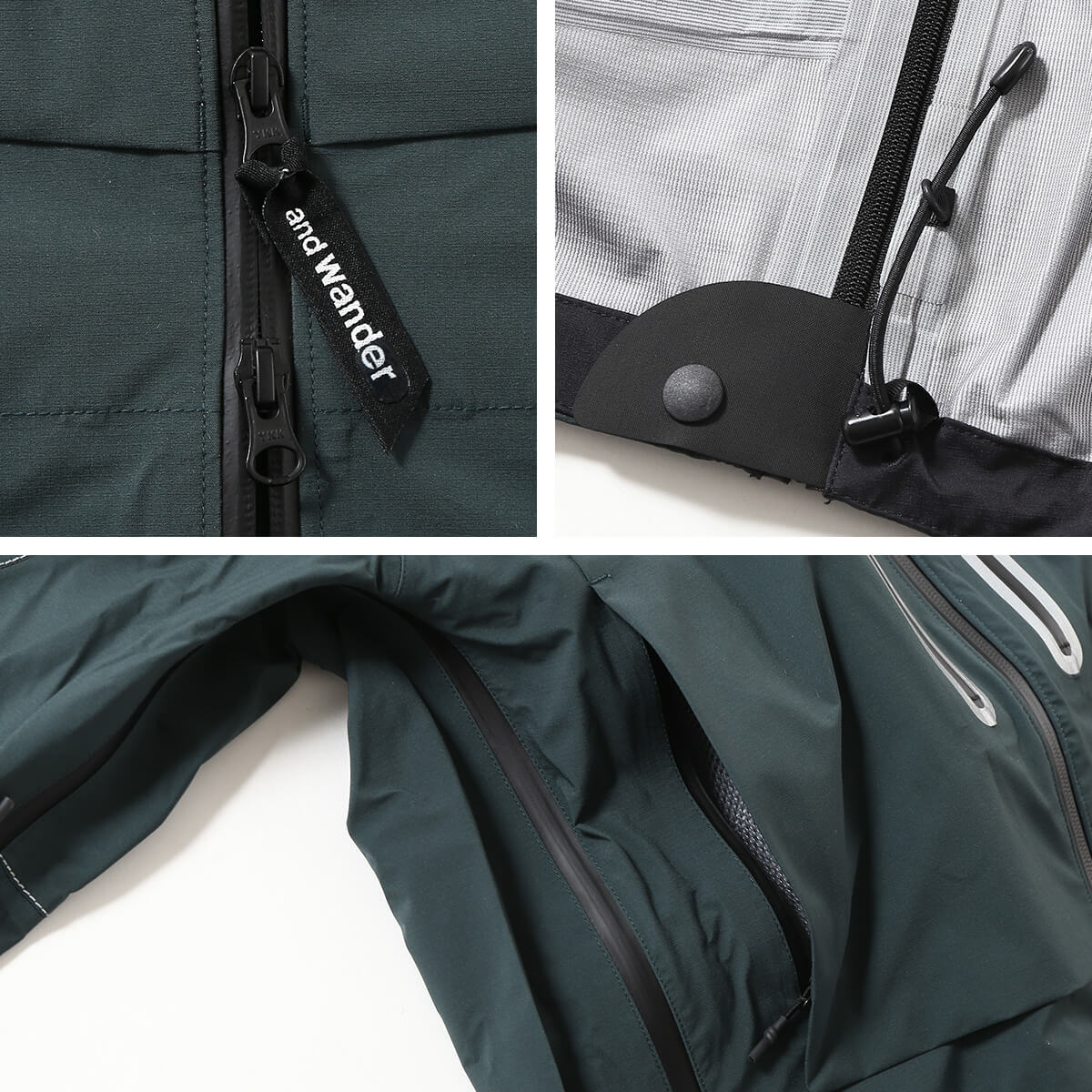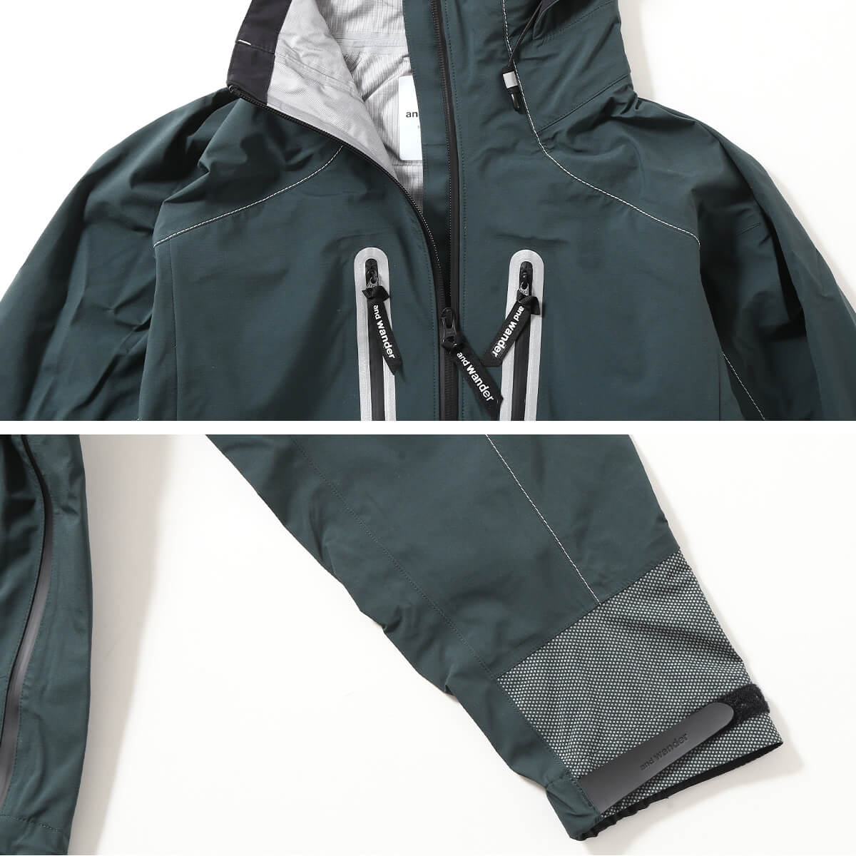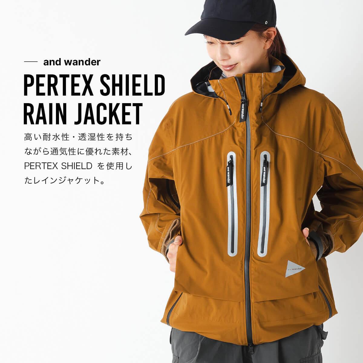 アンドワンダー パーテックスシールドレインジャケット and wander PERTEX SHIELD rain jacket メンズ レディース ユニセックス 5745911001 アウター トップス ジャケット 耐久 撥水 雨具 フード フーディ おしゃれ キャンプ アウトドア