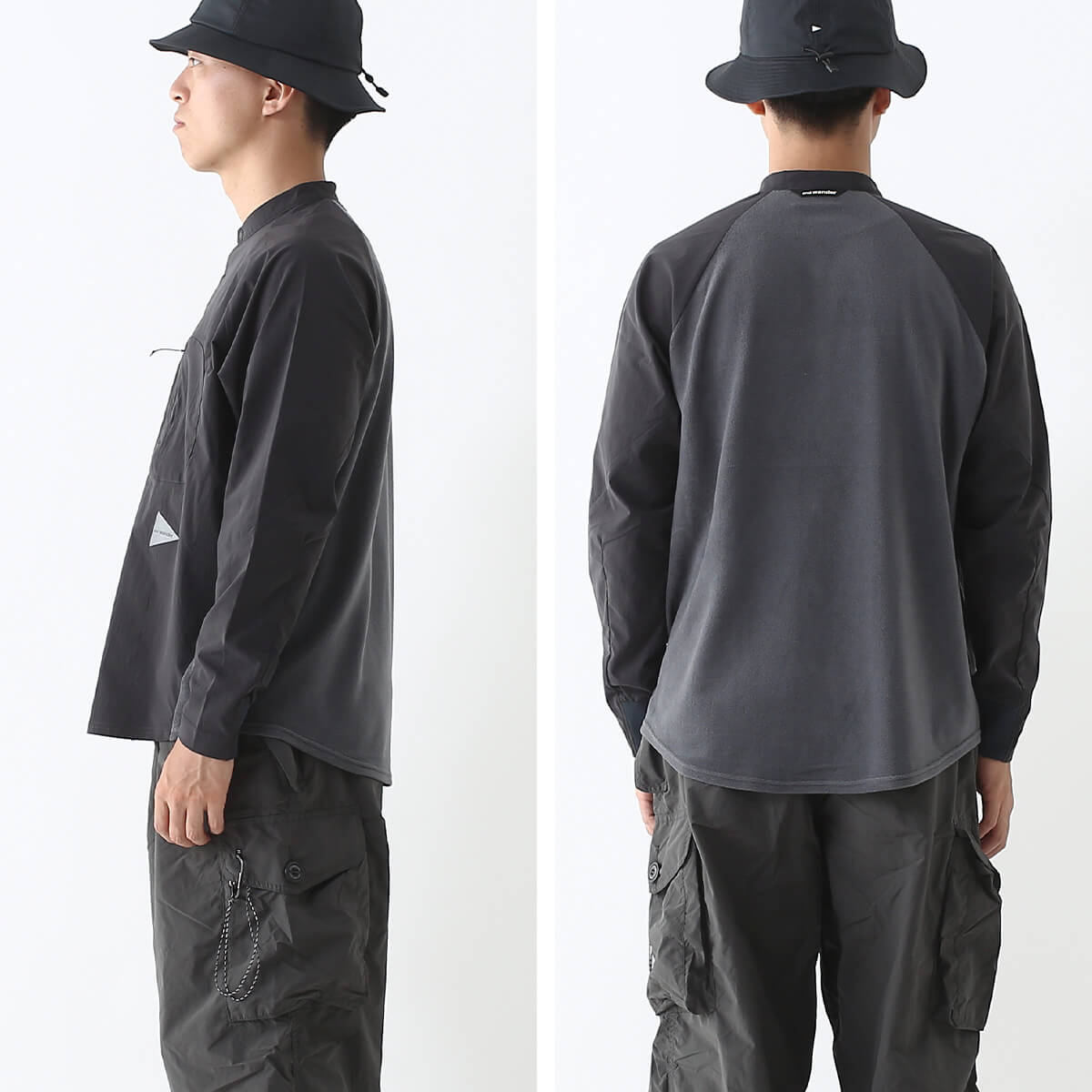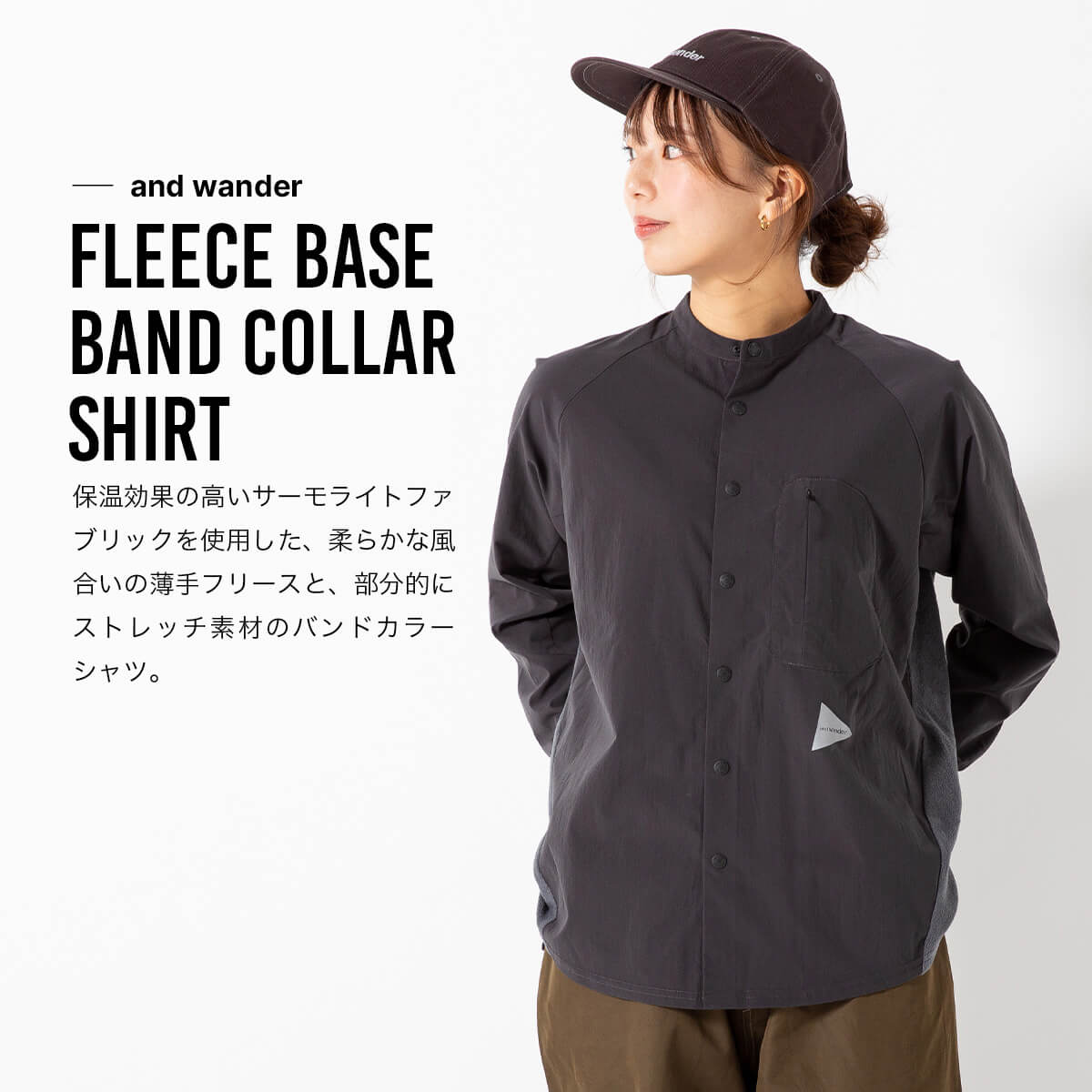アンドワンダー フリースベースバンドカラーシャツ and wander fleece base band collar shirt メンズ レディース ユニセックス 5744253121 Tシャツ ティシャツ 長袖 ロングスリーブ ロンT カットソー トップス おしゃれ キャンプ アウトドア