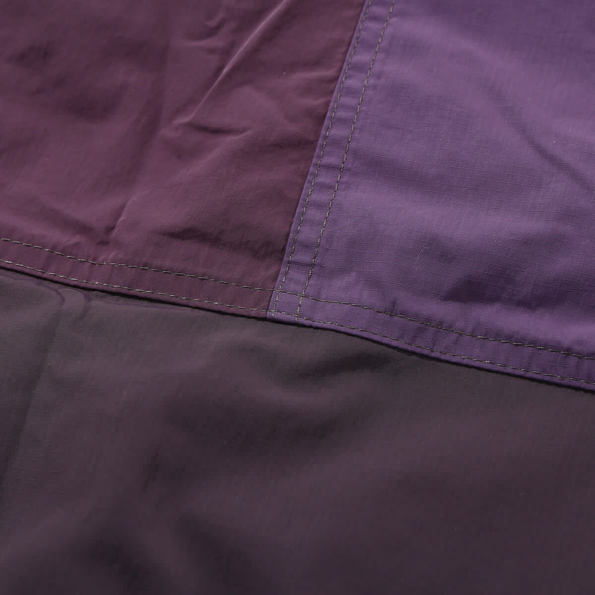 撥水加工(C0)を施したナイロンのリップストップとタフタをパッチワークしています。