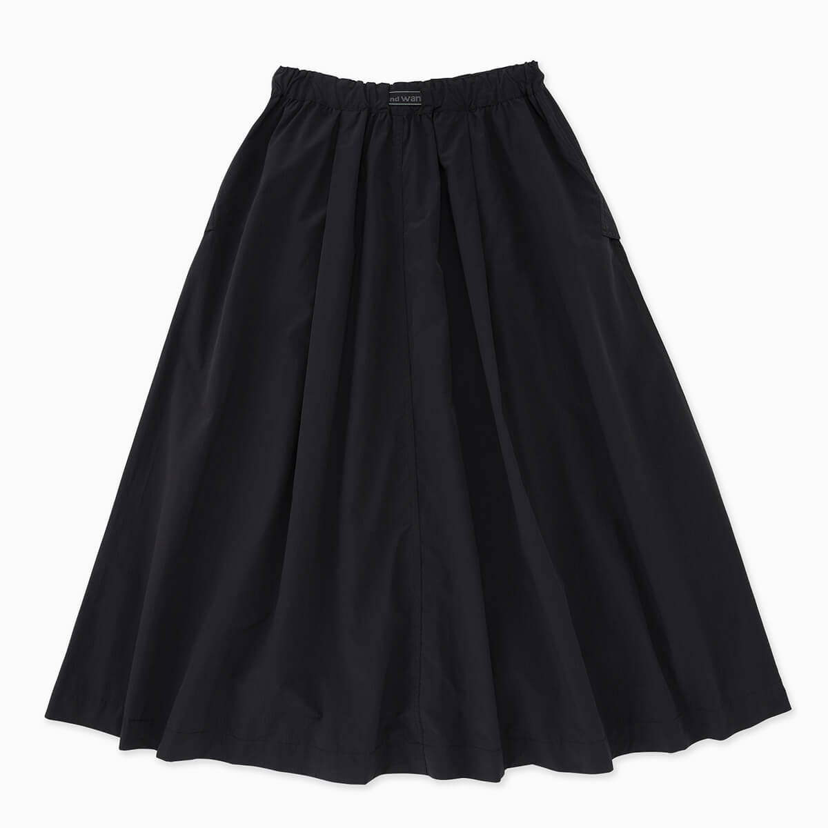 割繊糸を使った独特のハリ感と発色性のある撥水のリップ素材です。カーゴパンツのポケットを配したスカートです。