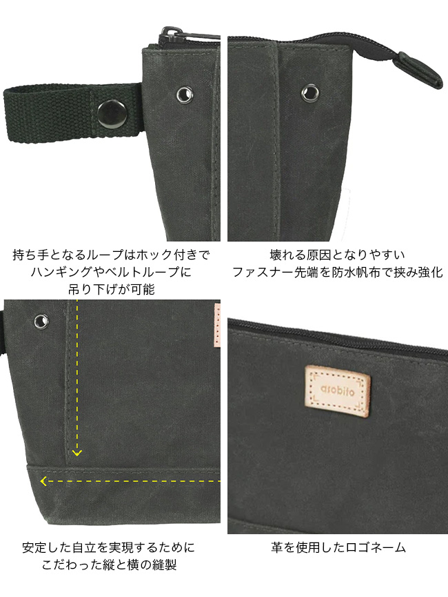 壊れる原因となりやすいファスナー先端を防水帆布で挟み強化。