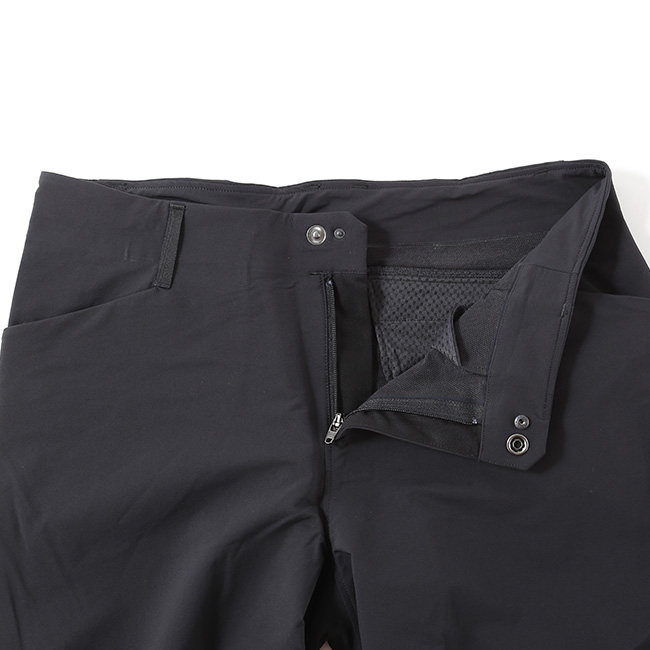 薄型のストレッチウエストバンドはベルトループ付きで、フライフロントはスナップ留め仕様。