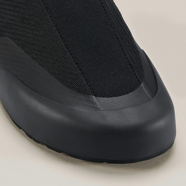 アプローチ(山道や岩場への移動)に必要な機能性と、登山後やクライミング後の休息期に求められる快適さを同時に満たすために設計されたモデルです。トレイルや岩場など不整地を歩くシーンでは、つま先を保護するトゥキャップとしっかりしたハイキング用アウトソールによってプロテクションとグリップ力を確保し、目的地に着いてからは足まわりにゆとりを持たせ通気性を高めたアッパーが快適な履き心地を提供します。