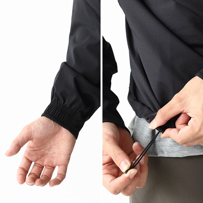 ヘルメット対応の調節可能フードと深めのフロントジッパーで快適な着脱を実現します。