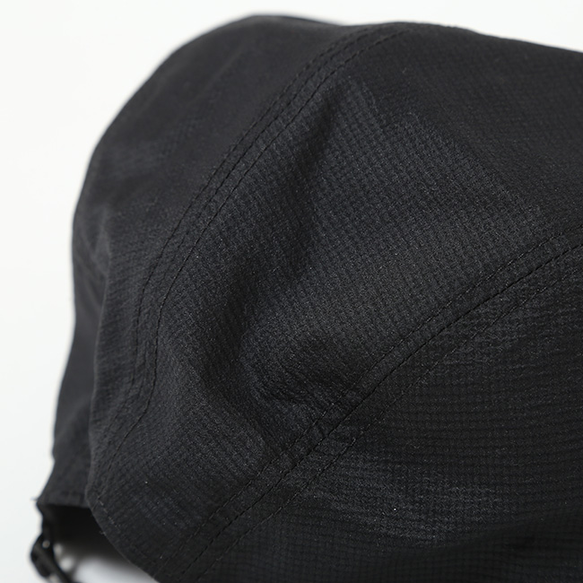 ストレッチナイロン素材は軽量で通気性に優れ、ショックコードアジャスターは素早く引っ張るだけで固定でき、つばのデザインにより最小限の重量で頭をカバーします。