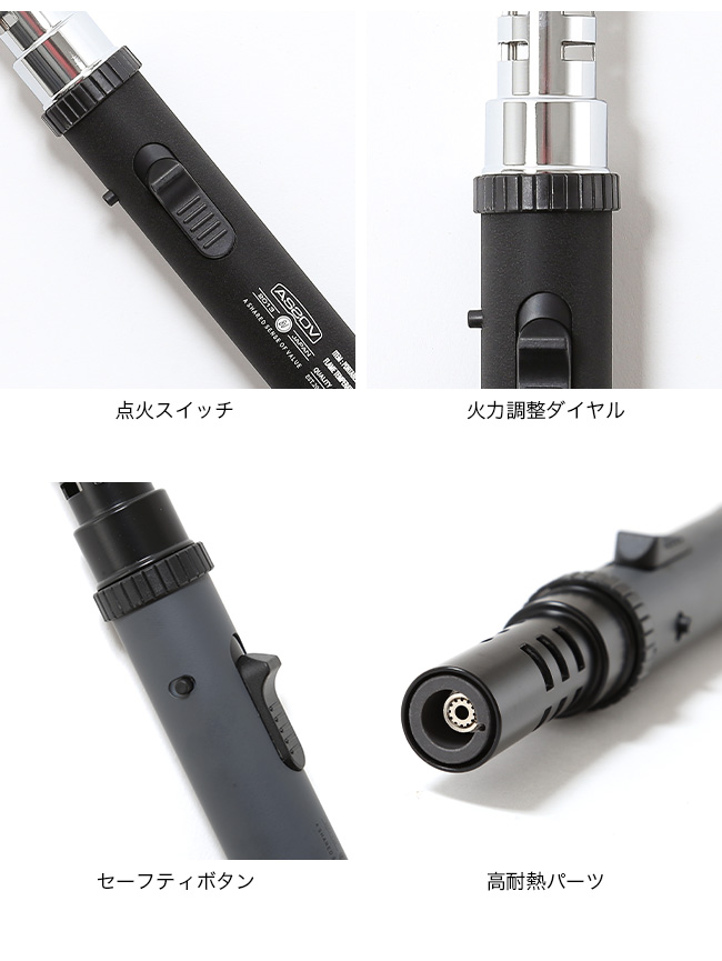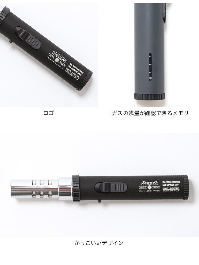 アッソブ ポータブルスティックバーナーリニューアル ブラック AS2OV PORTABLE STICK BURNER RENEWAL 472202-10 ライター トーチ 火器 おしゃれ 目盛り付き BBQ バーベキュー キャンプ アウトドア