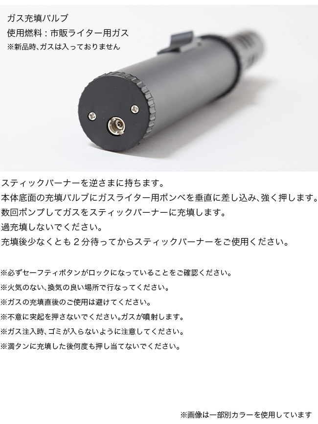 全長205mm、燃焼温度1,300°の高火力なポータブルスティックバーナーです。ロック機能がついており、誤って火がついてしまう防止や火を出し続けることが可能です。