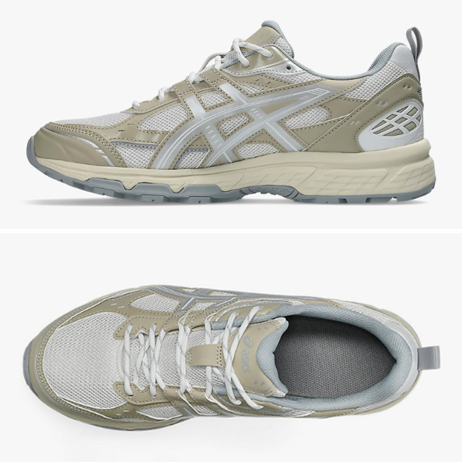 このスニーカーは、アッパーにGEL-KAHANA™ 3とGEL-TARGETのデザイン要素を取り入れている。マットや半光沢の質感の異なる素材が使用されたレイヤーが、アウトドアに見られる荒々しい質感とつながり、アーバントレイルの美学を表現している。