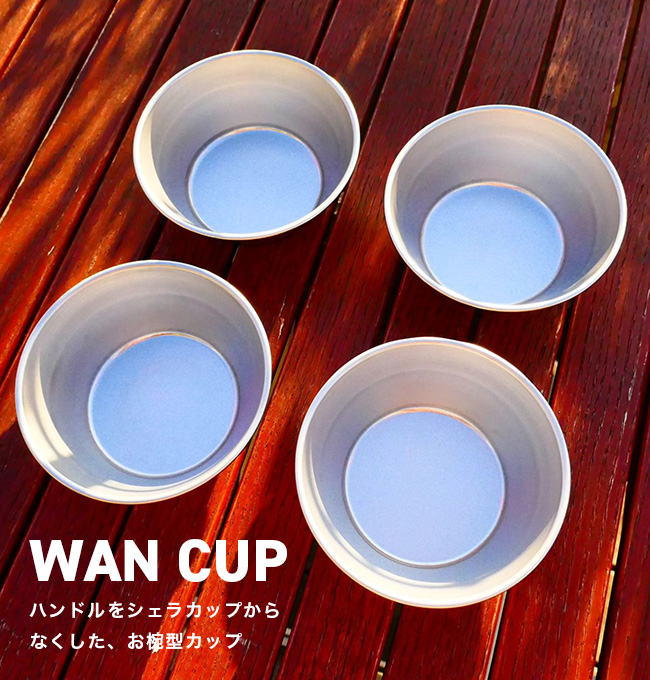 増えるごとにかさばるハンドルはどうにかならない物かと、スマートにスタッキングできる形状をずっと模索し、そもそもハンドルが無いシェラカップがあってもいいのでは?という発想からWAN CUPは誕生しました。