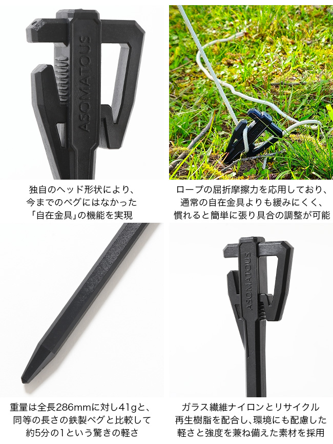 アソマタス エイサップ ASOMATOUS ASAP(Assist Speedy Adjust Peg) AT-048 ペグ 28cm キャンプ テント タープ アウトドア