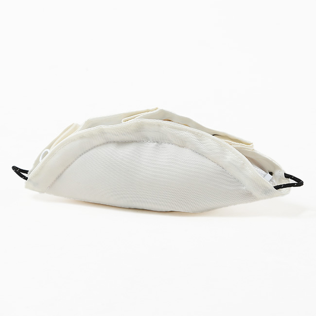 このポーチは、餃子らしさと高級感を演出するために、しっかりと生地を折り重ね、ミリタリージャケットや某有名カバンと同じ光沢のある柔らかな生地を使用しています。