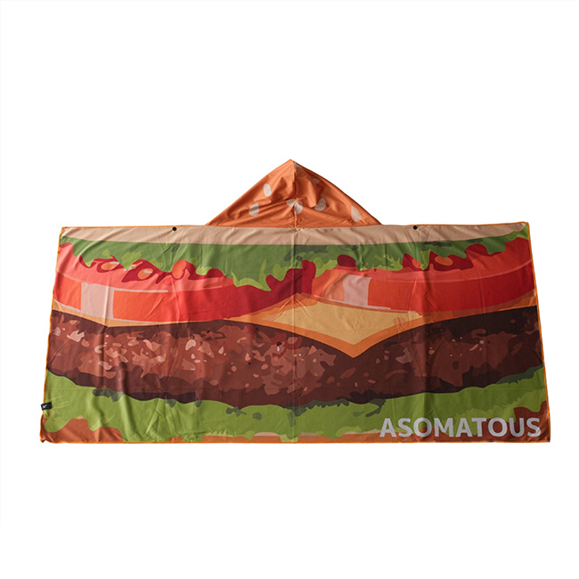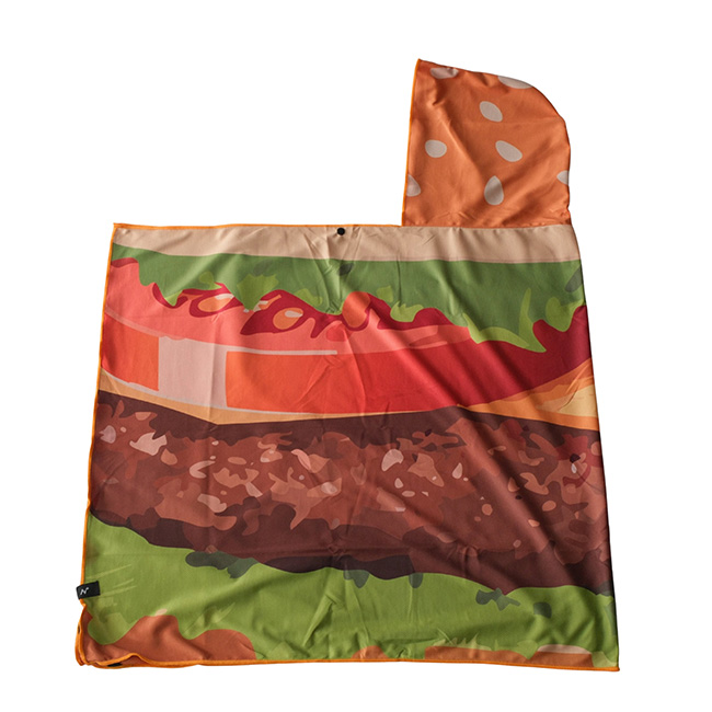 全面にド派手なハンバーガーフェイスをプリントしたスペシャルエディション!水に濡らして絞り、空気中で軽く振るだけ。