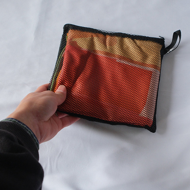 持ち運びに便利なメッシュポーチが付属するので、旅行やレジャー、野外のイベントに大活躍すること間違いなし!