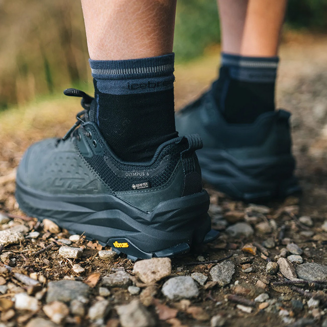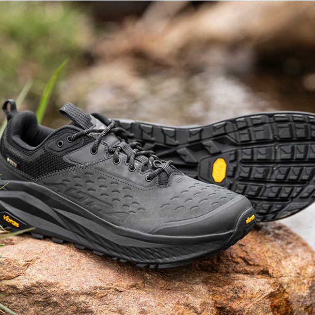新しい「OLYMPUS 6 HIKE LOW」は、これらの特長をそのままに、アッパーに耐久性の高いレザーを使用し、防水素材には革新的なGORE-TEX Invisible Fitを採用しました。レザーアッパーにより、メッシュアッパーでは心配な岩場などの厳しい環境でも、安心して行動できます。
