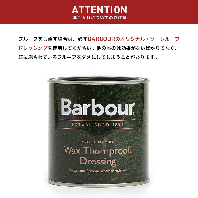 バブアー ソーンプルーフドレッシング Barbour Wax Thornproof Dressing UAC0001-MI11 ケア用品 お手入れ メンテナンス メンズ 男性 ワックス オイルドコットン 防水性 バーブァー バヴアー バブァー バブワー おしゃれ キャンプ アウトドア