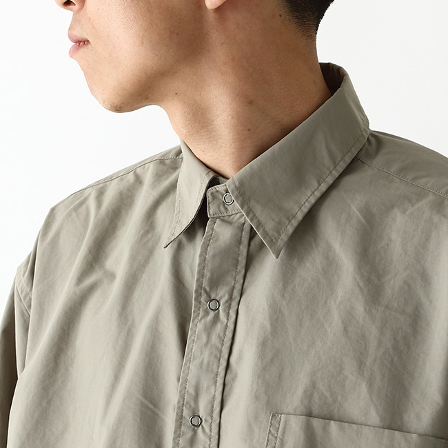 UPF 40の紫外線遮力があるSUPPLEX NYLONで作られているので、紫外線が強くなる季節に重宝します。身幅を大きくしたビッグサイズのシャツなのでオーバーサイズでザックリ着られます。