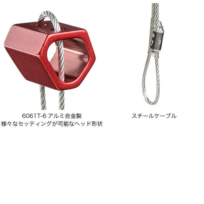 耐久性に優れた亜鉛メッキスチールケーブルを採用し、信頼性の高いクライミングプロテクションとして長く使用できます。