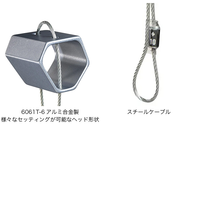 耐久性に優れた亜鉛メッキスチールケーブルを採用し、信頼性の高いクライミングプロテクションとして長く使用できます。