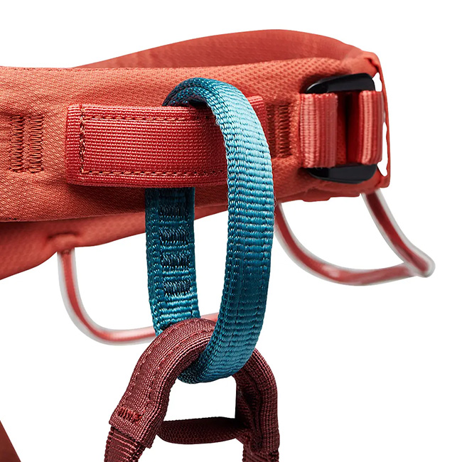 4つの圧力成形ギアループはクイックドローやカムの整理に便利で、スポーツクライミングからトラッドまで幅広く対応します。