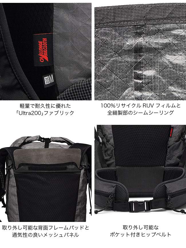 ・最小重量 521g (背面パッド、ヒップベルト、ストラップ取り外し時)