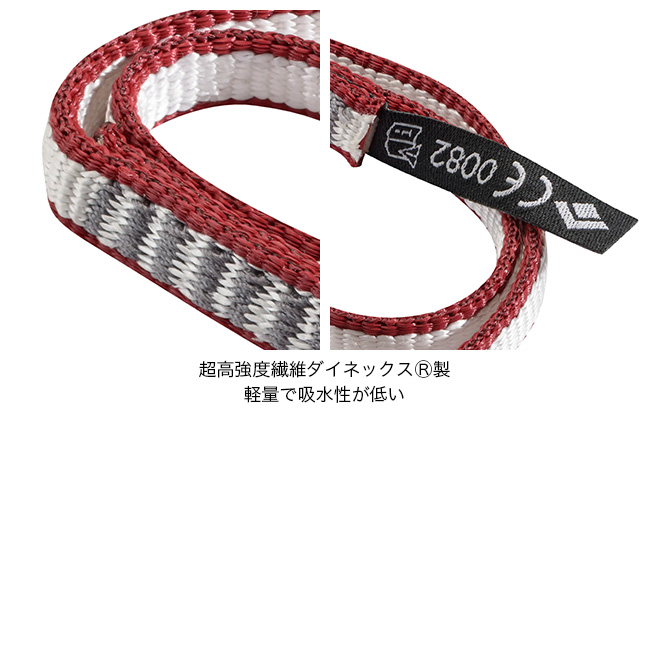 アンカーの構築や岩角・樹木へのスリング、ロープの流れをスムーズにする延長用途まで幅広く対応。高い耐摩耗性と軽量性を兼ね備えたDynex素材を採用し、装備の重量を抑えながら優れた耐久性を発揮します。