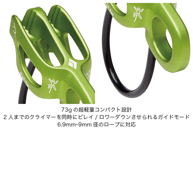 素早い行動が求められるアルパインクライミングに適した設計です。重量わずか73gの超軽量ボディながら、ビレイとラッペルの両方に対応する高い汎用性を備えています。
