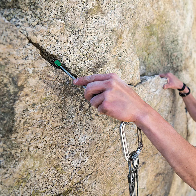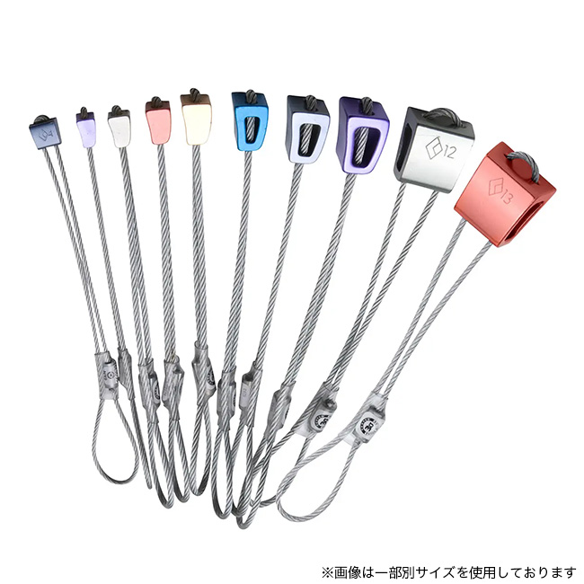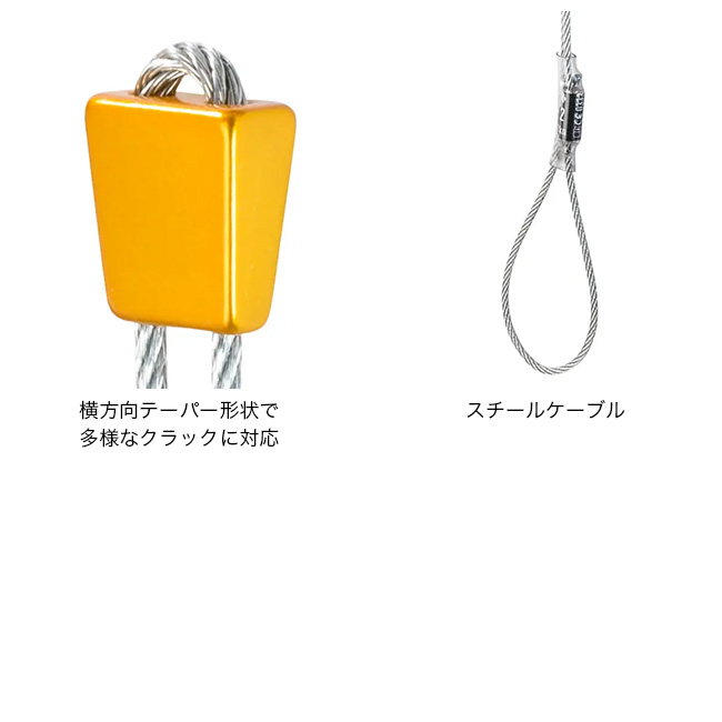 1972年にChouinard Equipmentが開発した初期のチョックにルーツを持つ、クリーンクライミングの歴史を受け継ぐアイテムです。アルミヘッドと亜鉛メッキスチールケーブルを組み合わせた耐久性の高い構造に加え、横方向にテーパーを持たせた形状により、フレアクラックやコンストリクション、平行クラックなど幅広いクラック形状に対応。