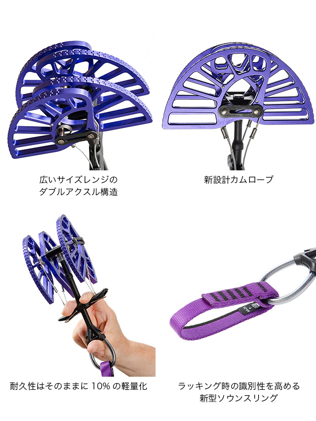 987年の登場以来、トラッドクライミングの定番として世界中で信頼されてきたカム型プロテクション。優れた強度と軽量性のバランスを備え、あらゆるクラックに対応するスタンダードモデルです。