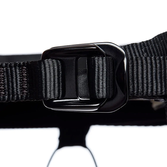 ウェストベルトと左右のレッグループにスピードバックルを備えたハーネス