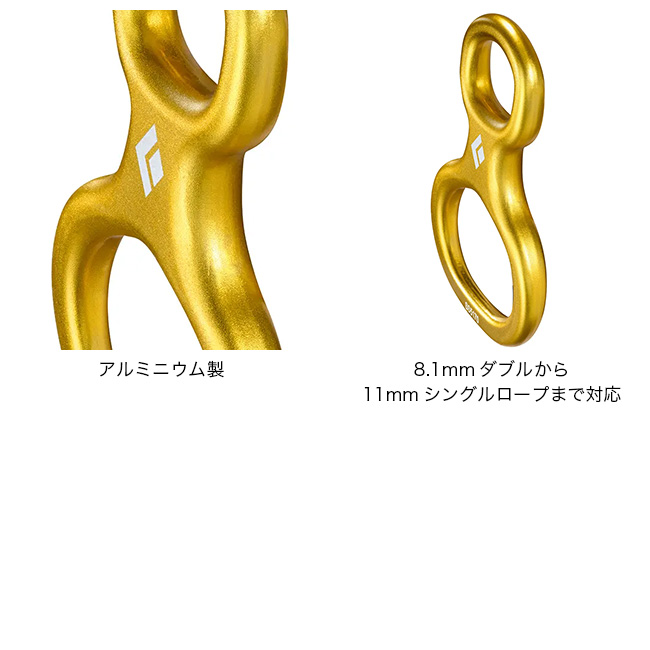クラシックなフィギュアエイト型デバイス。スムーズなラッペルと確実なビレイ操作を実現します。