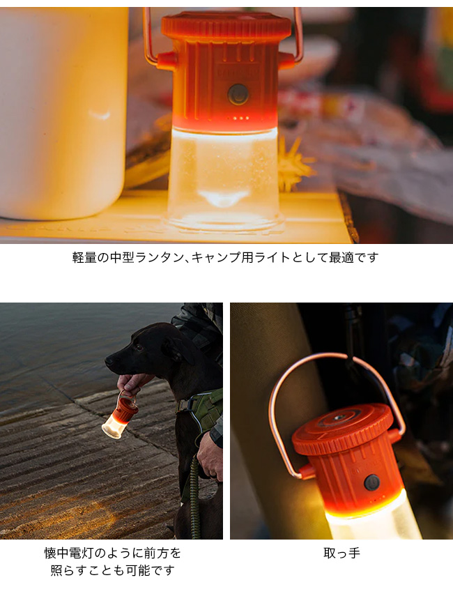 内蔵USB-Cコードを搭載し、ランタン、ランタン/ 懐中電灯、懐中電灯の3 つの多用途な照明モードを持ち、各モードで調光が可能です。