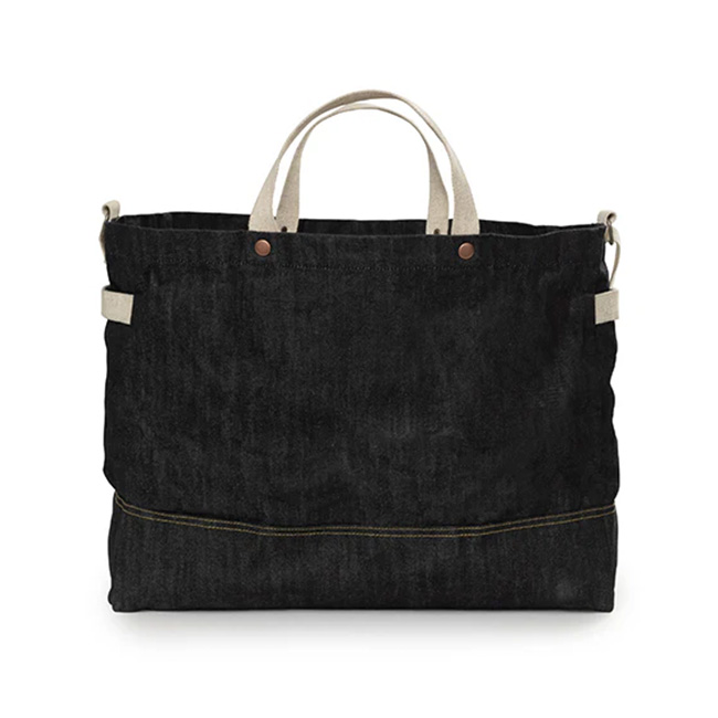 デニム生地で作られた、シンプルで頑丈な特大のキャリーオールトートバッグです。