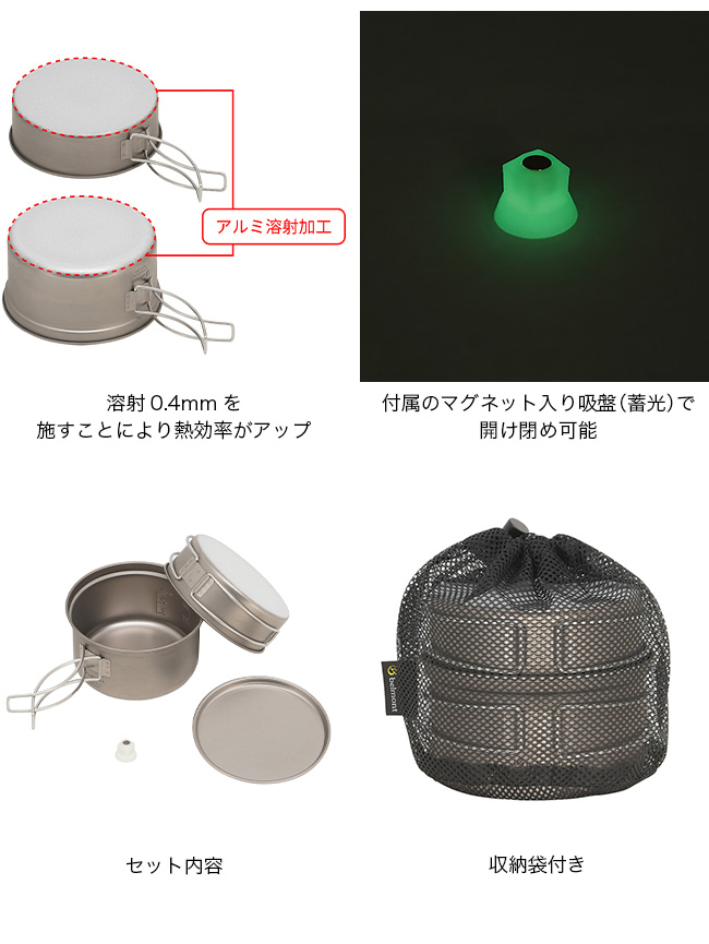 ベルモント チタントレールクッカー650 アルミ溶射(ケース付) belmont BM-584 日本製 鍋 ポット フライパン 蓋付き 軽量 炊飯 料理 BBQ バーベキュー 登山 キャンプ アウトドア
