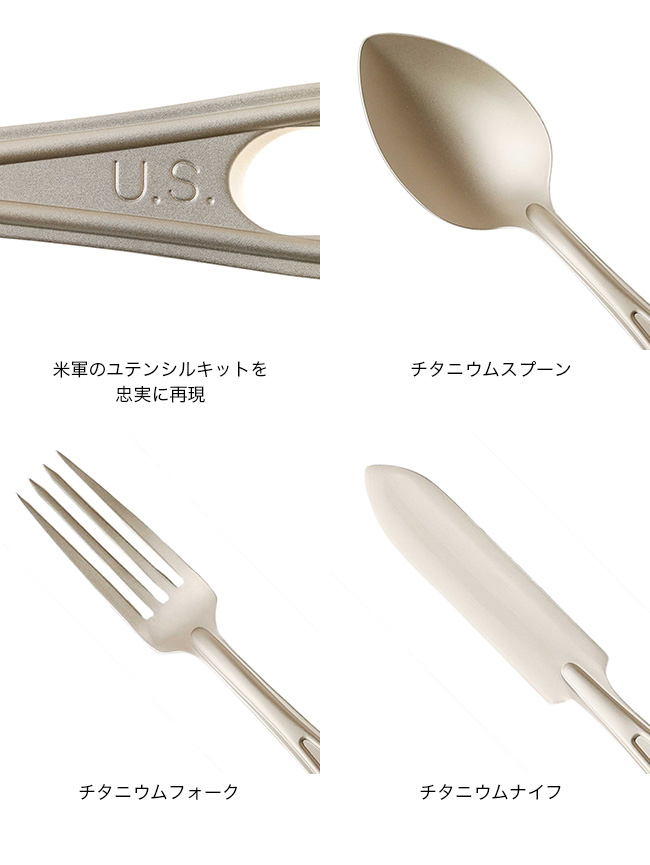 バリスティクス USチタニウムカトラリーセット Ballistics U.S. TITANIUM CUTLERY SET BLA-2404 カトラリー チタン BBQ バーベキュー ピクニック アウトドア キャンプ