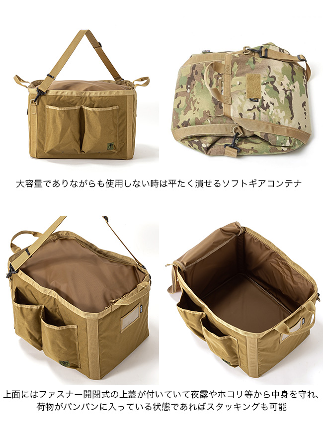 大容量でありながらも使用しないときは平たく潰せるソフトギアコンテナ。