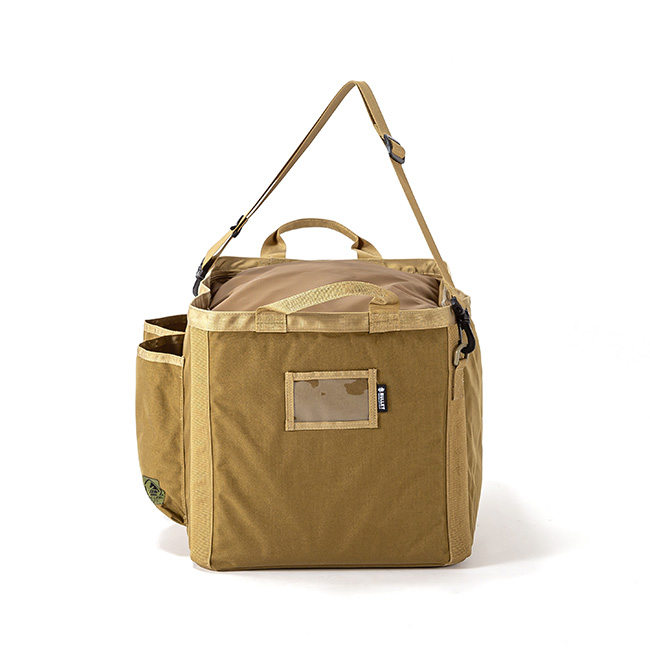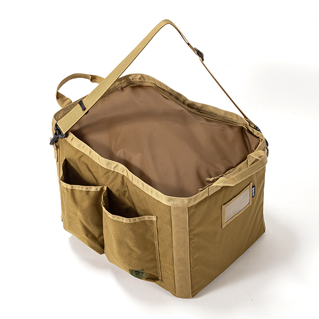 長辺の片側には大型のアウトポケットを2つ、2面の短辺にはそれぞれIDポケットとお好みのワッペン等を付けられるベルクロベースを配置いたしました。