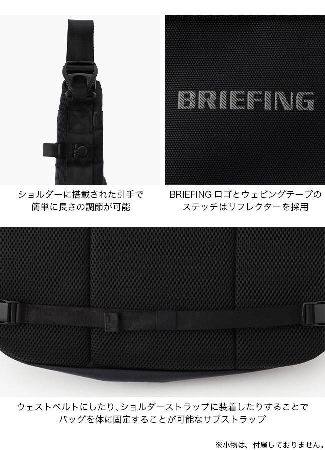 フロントに配したBRIEFINGロゴはリフレクターを採用しており、夜間の移動ではリフレクター部分が反射し、視認性に優れます。